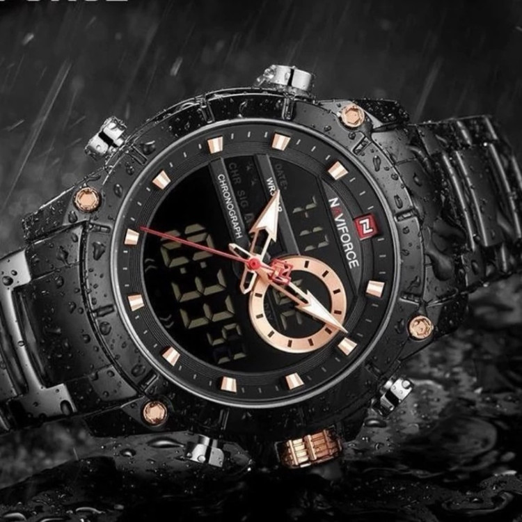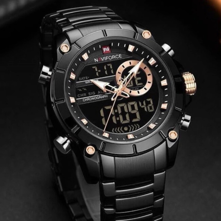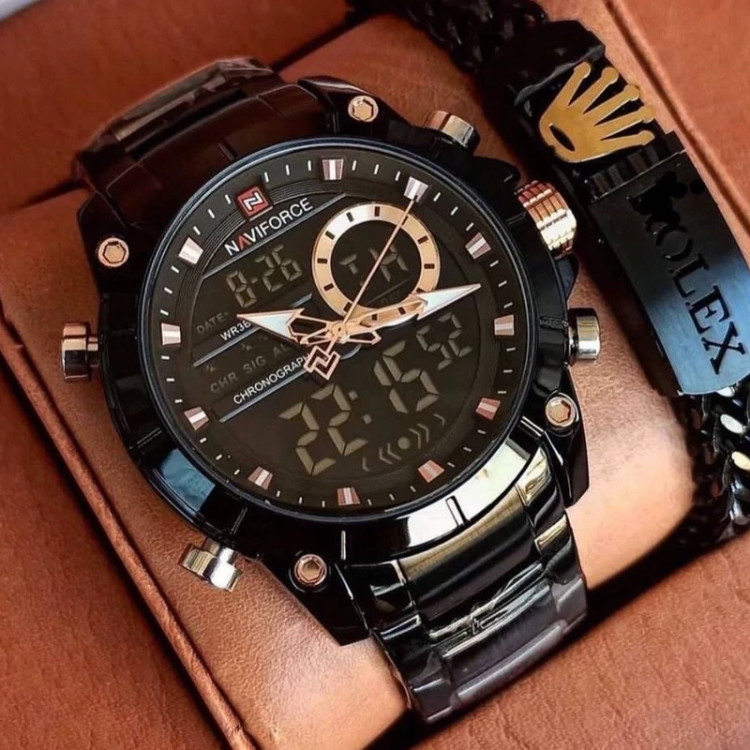 ساعت مچی نیوی فورس یک برند شرکتی میباشد این ساعت با بند استیل مشکی دو زمانه آنالوگ و دیجیتال و دارای تقویم و ضد آب میباشد این ساعت از لحاظ ظاهری بسیار شیک و عالی و ساعت خاص میباشد شما عزیزان لیاقت بهترین ها هستید