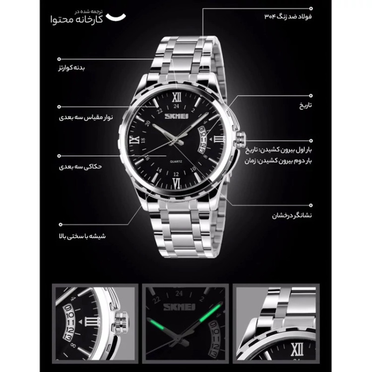 موتور ژاپن. . ضد آب 3atm . تقویم هلالی بند استیل ضد زنگ ضد حساسیت شیشه معدنی قطر صفحه 40 میلیمتر جعبه اسکمی باتری یدک