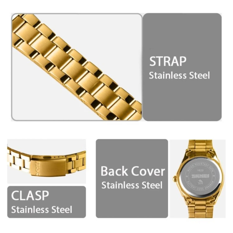 ساعت زنانه اسکمی skmei 1620 g کلاسیک گلد استیل