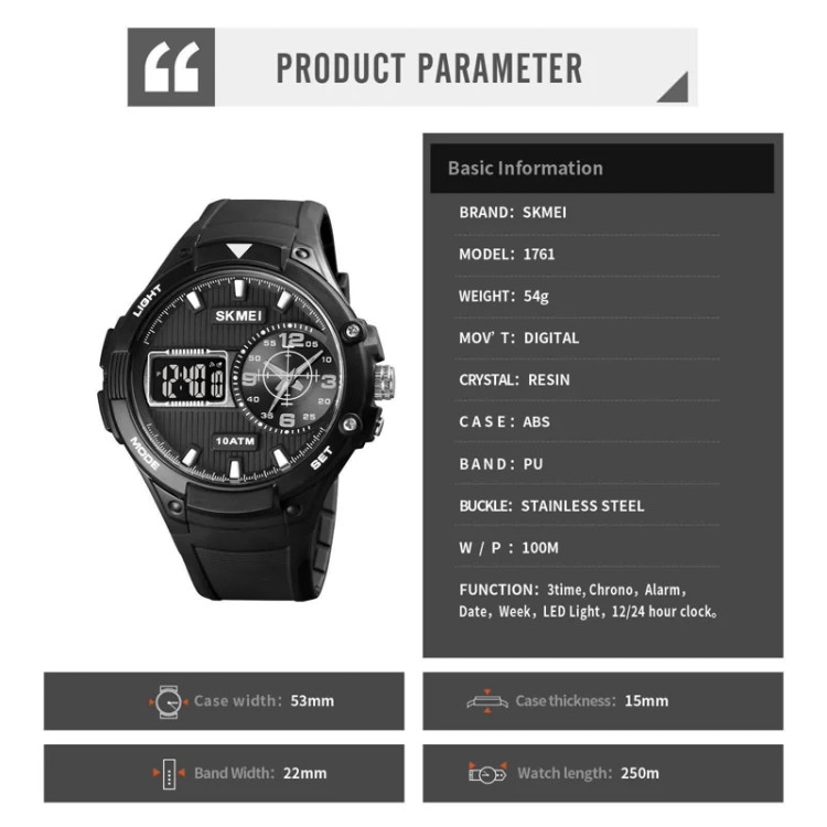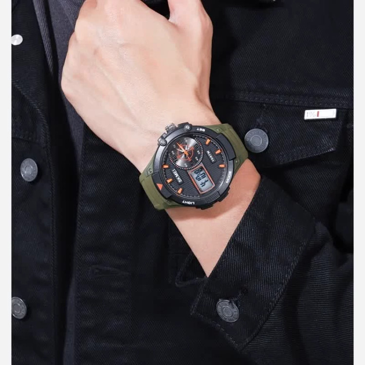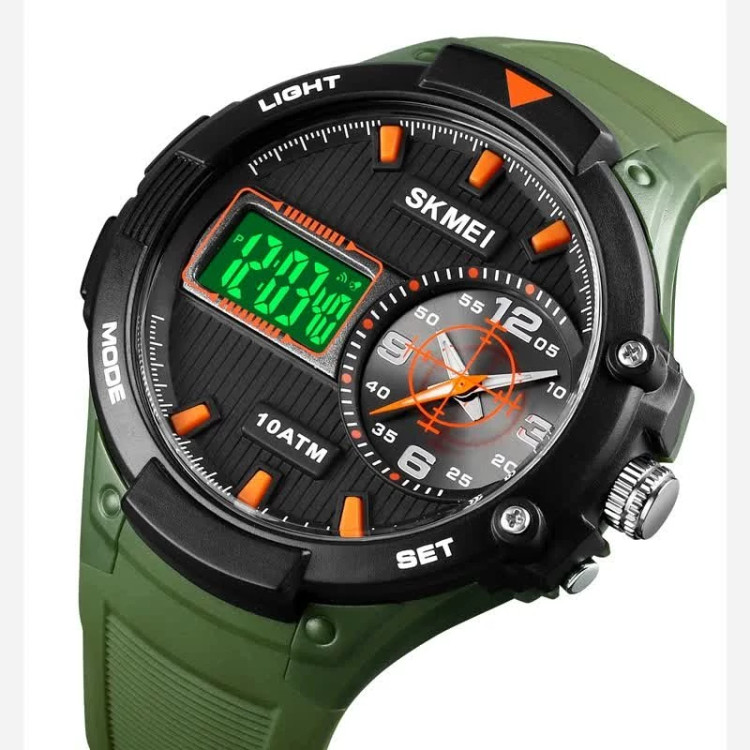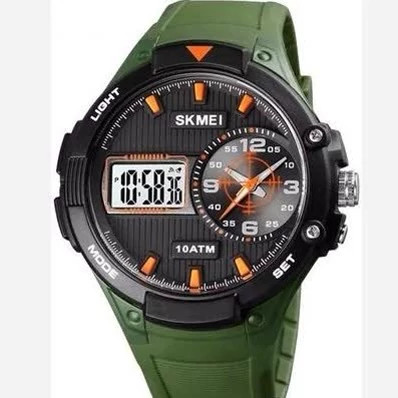 موتور ژاپن . ضد آب 3atm . ((رنگ عقربه و اعداد شبیه عکسیlوله)) جعبه اصلی بند pu باتری یدک اورجینال دو زمانه دیجیتال و یک آنالوگ کرنومتر آلارم تقویم نور پشت صفحه قطر صفحه 53 mm ضد آب 10atm