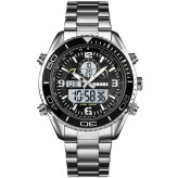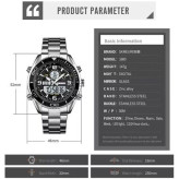 متاسفانه این کالا در حال حاضر موجود نیست. میتوانید از طریق لیست بالای صفحه، از محصولات مشابه این کالا دیدن نمایید.((کارت گارانتی یکساله اینترنشنال)) موتور ژاپن . نورپس زمینه( بک لایت سبز) آلارم . تقویم . نمایش 24 ساعته . دو زمانه ((طراحی لاکچری و جدید)) قطر صفحه 46 mm و صفحه بزرگی داره وزن 147 گرم دوزمانه یکی عقربه ای ویکی دیجیتال اورجینال.دارای بارکد قابل اسکن با گوشی که ساعت اصل رو از فیک مشخص میکنه جنس بند استیل ضد زنگ ضد حساسیت جنس بدنه آلیاژ روی رنگ ثابت پشت ساعت استیل مقاوم . ضد آب تا 3at جعبه اصلی