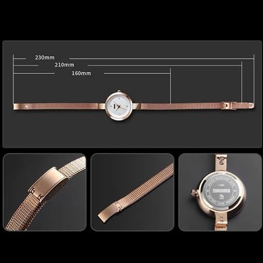 ((ساعت خیلی ظریف و سبکه)) رنگ رزگلد موتور ژاپن A++ باتری ژاپن جنس بدنه آلیاژ روی بند استیل ضد زنگ و رنگ ثابت پشت ساعت استیل مقاوم دارای بارکد اصالت . ضد آب تا 3at جعبه اصلی باتری یدک ارسال سریع روز بعد خرید قطر صفحه 26 mm وزن 25 گرم