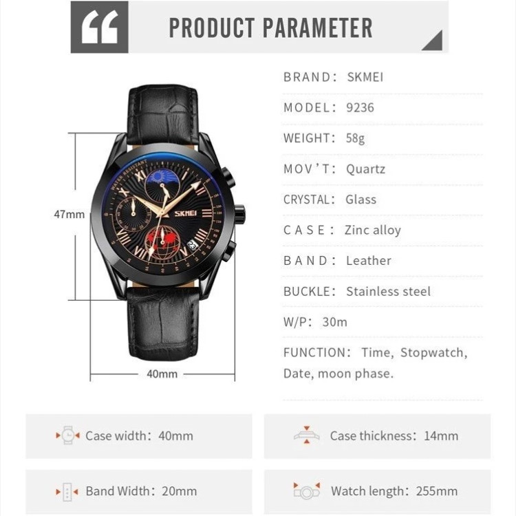 ساعت اسکمی سه موتوره مردانه skmei 9236 bl