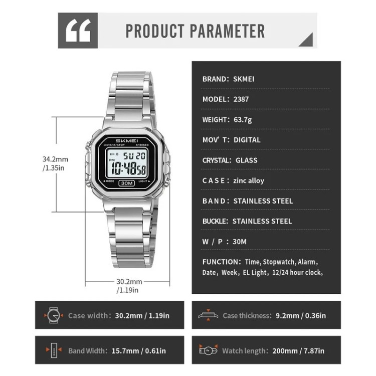 ساعت زنانه اسکمی skmei دیجیتال 2382 کلاسیک