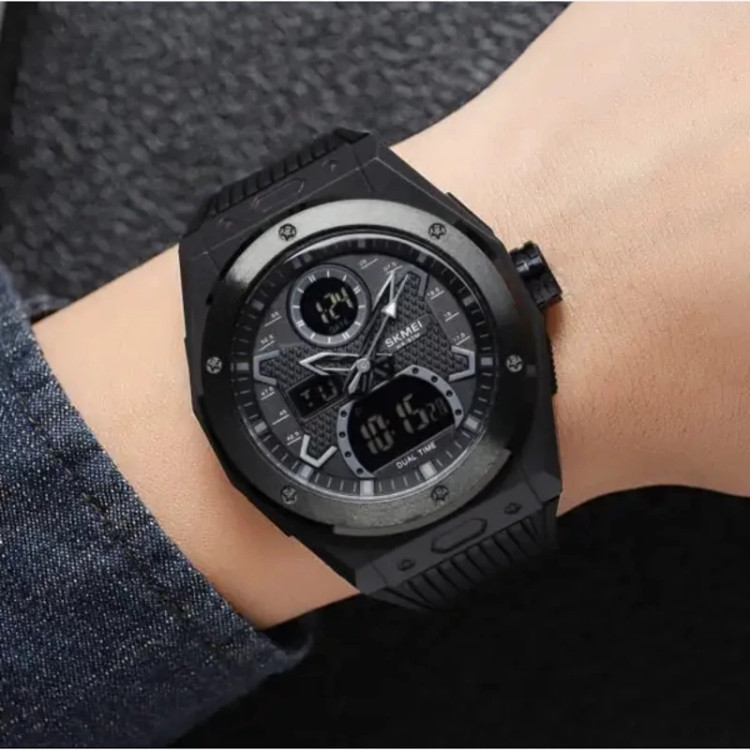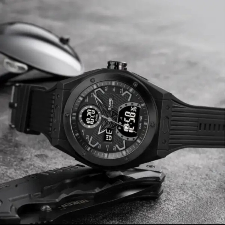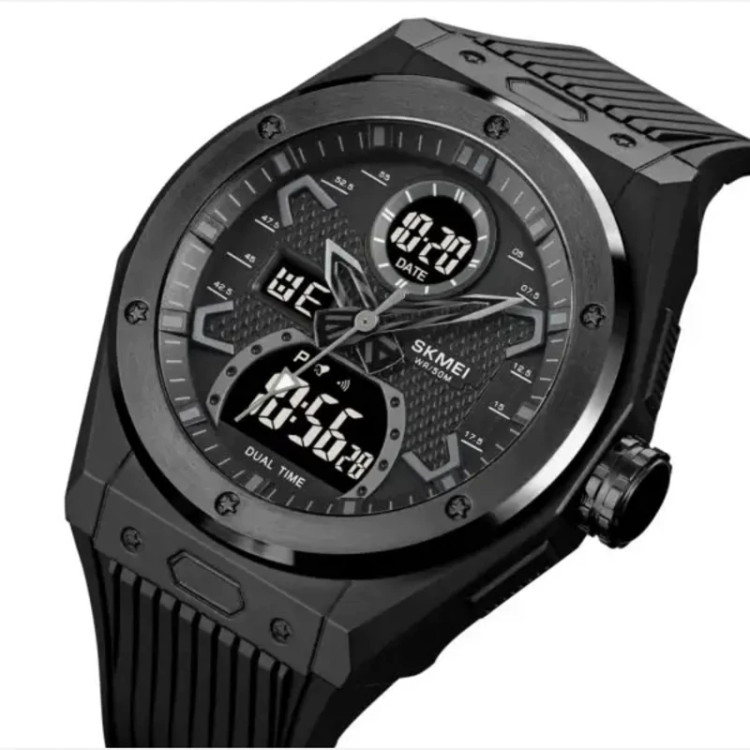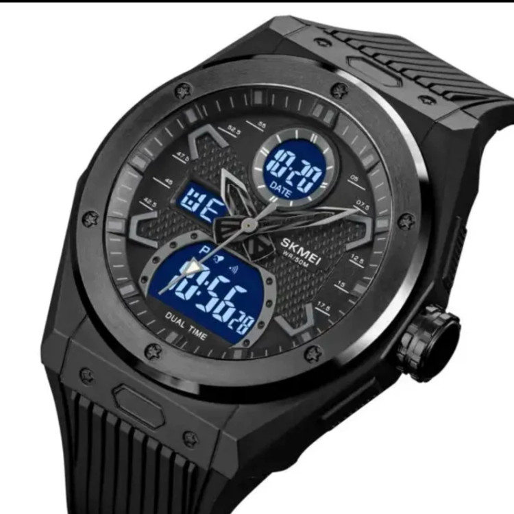 موتور ژاپن A++ باتری ژاپن قطر صفحه55mm و صفحه بزرگی داره دوزمانه عقربه ای و دیجیتال ((نورشب فقط در شب دیده میشه)) ضد آب جعبه اسکمی بارکد اصالت قابل اسکن آلارم تقویم کامل