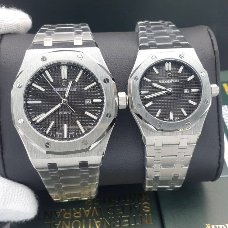 ست ساعت مردانه و زنانه اودمار پیگه AP کیفیت عالی موتور ژاپن رنگ ثابت کد 2116340 همراه با جعبه ساعت شیک صفحه مشکی