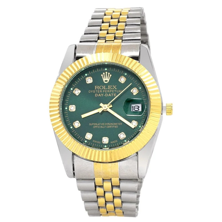 ساعت مچی مردانه رولکس ROLEX مدل 1627 • • برند : ROLEX • ضد آب در حد شست و شوی دست • مناسب برای : آقایان • روزشمار : دارد • نوع قفل : کلیپسی • شیشه : اکرلیک • جنس بند : استیل • رنگ بند : نقره ای طلایی • شکل صفحه: دایره ای • قطر صفحه : 35 میلیمتر • رنگ صفحه : سبز • درجه کیفیت موتور : کوارتز A++ • همراه با جعبه شکیل و باطری اضافه تمامی عکس ها از خود محصول در استدیو تخصصی رُز گرفته شده است ویژگی های خاص : تقویم تلسکوپی ، موتور کوارتز با کیفیت ، حک برند رولکس پشت صفحه ی ساعت