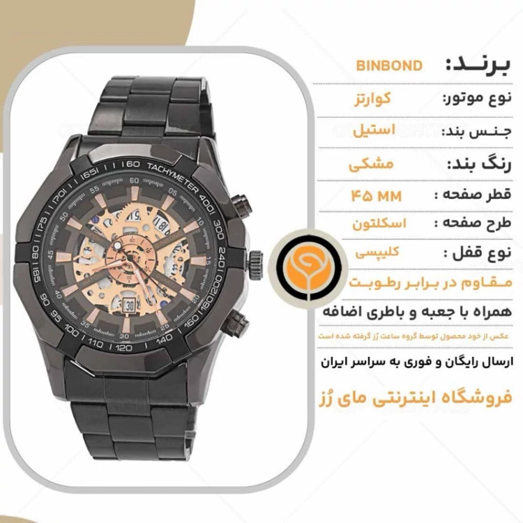 ساعت مچی مردانه بین باند BINBOND صفحه اسکلتون مدل 1895