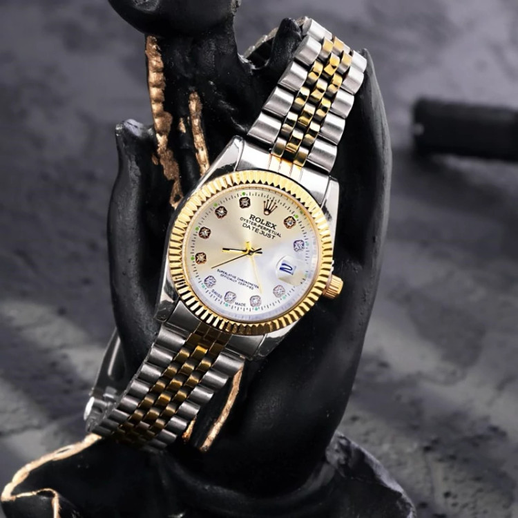 ⌚️#ساعتمچی ROLEX مدل 807 . ✅ قيمت ویژه ☑️ مقاوم در برابر رطوبت ☑️ روزشمار : دارد ☑️نوع قفل : کلیپسی ☑️ شیشه : آکریلیک ☑️ رنگ : نقره ای طلایی ☑️ جنس بند : استیل ☑️ شکل صفحه : گرد ☑️ برند : ROLEX ☑️ رنگ صفحه : نگین دار نقره ای ♻️ درجه کیفیت موتور : کوارتز A+ 🎁 همراه باجعبه کادویی شیک 📷 عكس از خود محصول در آتلیه تخصصی گروه ساعت MYROZ تهیه شده 🌐سفارش و پشتيباني اینستاگرام : . 🚛 ارسال رایگان