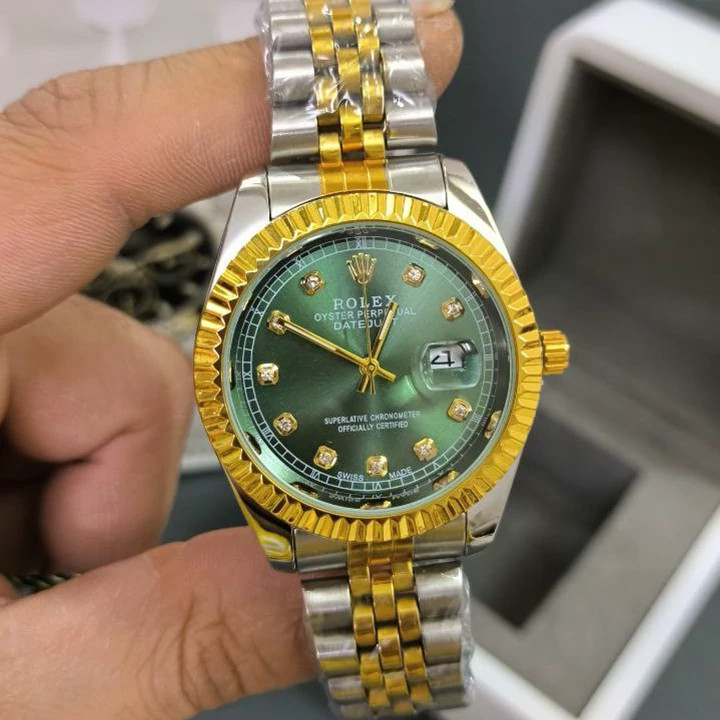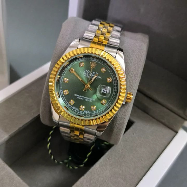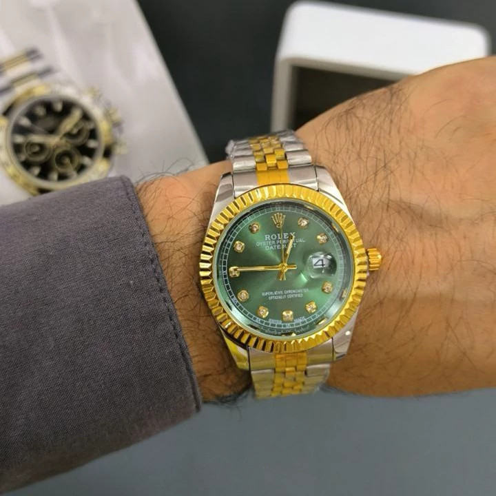 ساعت مچی مردانه رولکس Rolexمدل 2249 • • برند : Rolex • ضد آب 3 اتمسفر ( در حد پاشش آب 3ATM ) • مناسب برای : آقایان • روزشمار : دارد • نوع قفل : کلیپسی • شیشه : اکرلیک • جنس بند : استیل • رنگ بند : طلایی نقره ای • شکل صفحه: دایره • رنگ صفحه : سبز • درجه کیفیت موتور : کوارتز A+++ • همراه با جعبه شکیل و باطری اضافه تمامی عکس ها از خود محصول در استدیو تخصصی مای رُز گرفته شده است ویژگی های خاص : موتور با کیفیت مدل SL کوارتز
