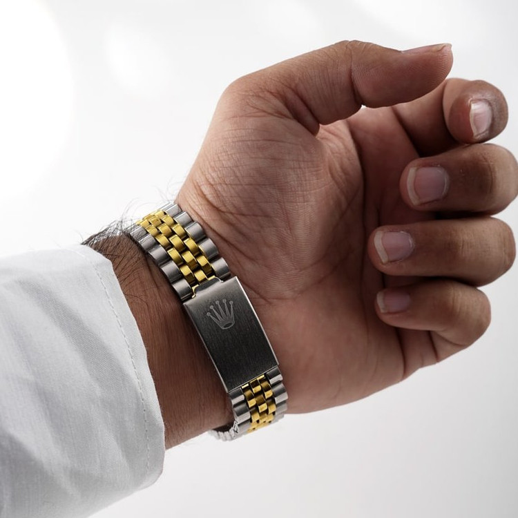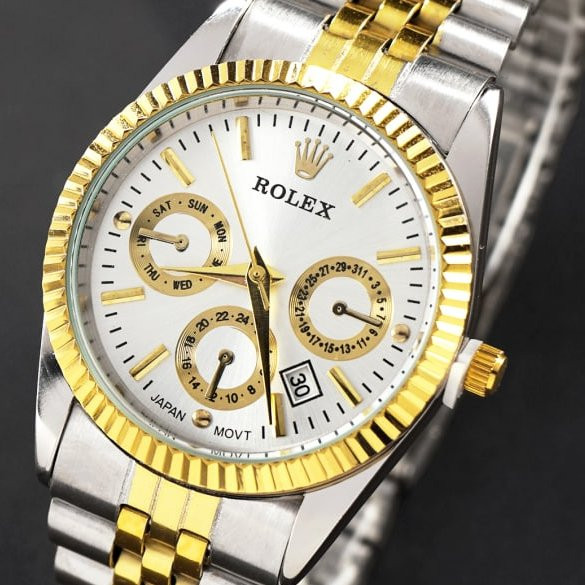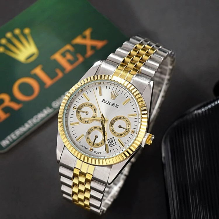⌚️#ساعتمچی رولکس مدل 1085 . ✅ قيمت ویژه ☑️ مقاوم در برابر رطوبت ☑️ روزشمار : دارد ☑️نوع قفل : تاشو ☑️ شیشه : آکریلیک ☑️ رنگ : طلایی نقره ای ☑️ جنس بند : استیل ☑️ شکل صفحه: دایره ☑️ برند : ROLEX ☑️ رنگ صفحه : سفید ♻️ درجه کیفیت موتور : کوارتز A+ 🎁 همراه با جعبه و باطری اضافه 📷 عكس از خود محصول در آتلیه تخصصی گروه ساعت Myroz تهیه شده 🌐 . 🚛 ارسال رایگان
