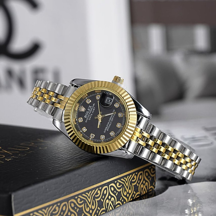 ⌚️#ساعتمچی رولکس زنانه مدل 1095 . ✅ قيمت ویژه ☑️ مقاوم در برابر رطوبت ☑️ روزشمار : دارد ☑️نوع قفل : تاشو ☑️ شیشه : آکریلیک ☑️ رنگ : طلایی نقره ای ☑️ جنس بند : استیل ☑️ شکل صفحه: دایره ☑️ برند : ROLEX ☑️ رنگ صفحه : مشکی ♻️ درجه کیفیت موتور : کوارتز A+ 🎁 همراه با جعبه و باطری اضافه 📷 عكس از خود محصول در آتلیه تخصصی گروه ساعت Myroz تهیه شده 🌐 . 🚛 ارسال رایگان