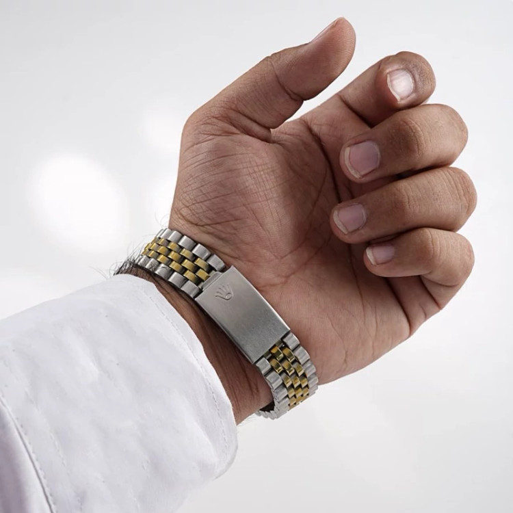 ⌚️#ساعتمچی مردانه رولکس مدل 1046 . ✅ قيمت ویژه ☑️ مقاوم در برابر رطوبت ☑️ روزشمار : دارد ☑️نوع قفل : کلیپسی ☑️ شیشه : آکریلیک ☑️ رنگ : نقره ای طلایی ☑️ جنس بند : استیل ☑️ شکل صفحه: دایره ☑️ برند : ROLEX ☑️ رنگ صفحه : نقره ای ♻️ درجه کیفیت موتور :تحت لیسانس ژاپن کوارتز A+ 🎁 همراه با جعبه و باطری اضافه 📷 عكس از خود محصول در آتلیه تخصصی گروه ساعت Myroz تهیه شده 🌐 . 🚛 ارسال رایگان