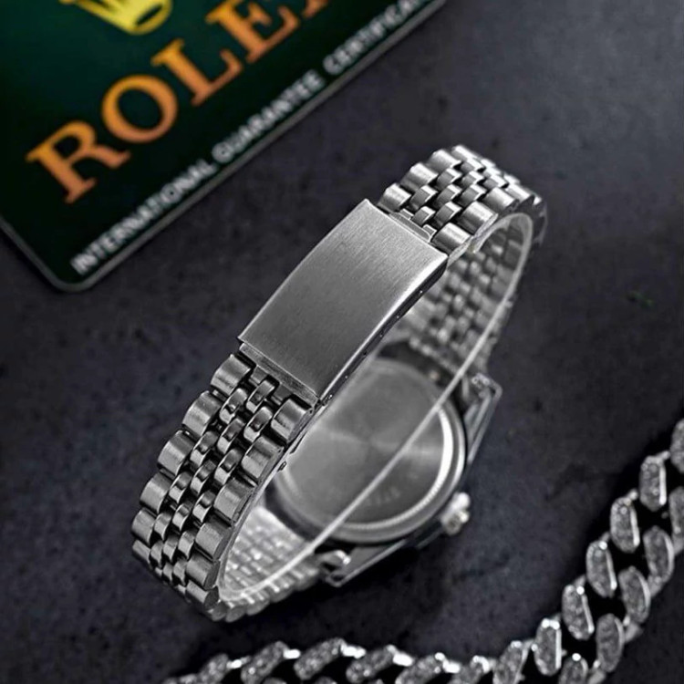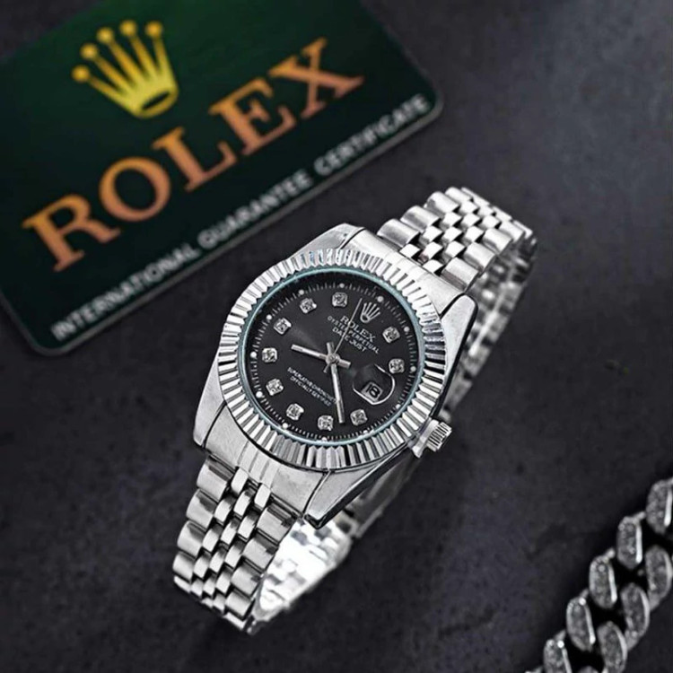 ساعت مچی زنانه رولکس ROLEX طرح DATEJUST مدل 1272 • قیمت : 400 هزارتومان ✓ قیمت با تخفیف • برند : ROLEX • مقاوم در برابر رطوبت • مناسب برای : خانم ها • روزشمار : دارد • نوع قفل : کلیپسی • شیشه : آکرلیک • رنگ : نقره ای • جنس بند : استیل • رنگ بند : نقره ای • شکل صفحه: دایره • قطر صفحه : 31 میلیمتر • رنگ صفحه : مشکی • درجه کیفیت موتور : کوارتز A++ • همراه با جعبه و باطری اضافه تمامی عکس ها از خود محصول در استدیو تخصصی رُز گرفته شده است ارسال رایگان