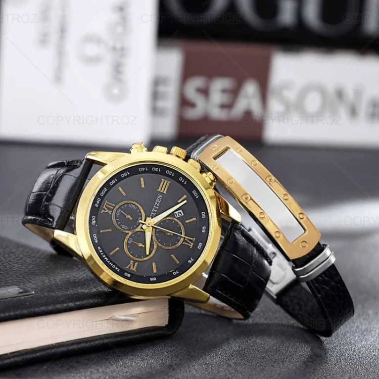 ست ساعت مچی و دستبند مردانه سیتیزن CITIZEN مدل 1594 دارای جعبه
