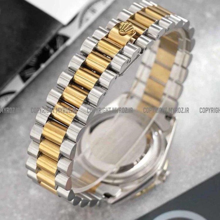 ساعت مچی مردانه رولکس ROLEX طرح دیت جاست مدل 2007 • • برند : ROLEX • ضد آب 3 اتمسفر ( در حد پاشش آب 3ATM ) • مناسب برای : آقایان • روزشمار : دارد • نوع قفل : اصلی رولکس • شیشه : سافایر • جنس بند : استیل • رنگ بند : نقره ای طلایی • شکل صفحه: دایره ای • قطر صفحه : 35 میلیمتر • رنگ صفحه : مشکی • وزن خالص : 105 گرم • درجه کیفیت موتور : کوارتز A++ • همراه با جعبه شکیل و باطری اضافه تمامی عکس ها از خود محصول در استدیو تخصصی مای رُز گرفته شده است ویژگی های خاص : تقویم تلسکوپی ، موتور کوارتز با کیفیت ، حک برند رولکس پشت روی قفل ، فریم نگین کاری شده و رنگ ثابت