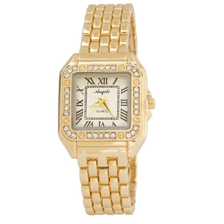 ساعت مچی زنانه AOGILI مدل 2212 • • برند : AOGILI • ضد آب 3 اتمسفر ( در حد پاشش آب 3ATM ) • مناسب برای : خانم ها • روزشمار : ندارد • نوع قفل : کلیپسی • شیشه : اکرلیک • جنس بند : استیل • رنگ بند : طلایی • شکل صفحه: مربع • قطر صفحه : 25 میلیمتر • رنگ صفحه : سفید • وزن خالص : 70 گرم • درجه کیفیت موتور : کوارتز A++ • همراه با جعبه شکیل و باطری اضافه تمامی عکس ها از خود محصول در استدیو تخصصی مای رُز گرفته شده است .