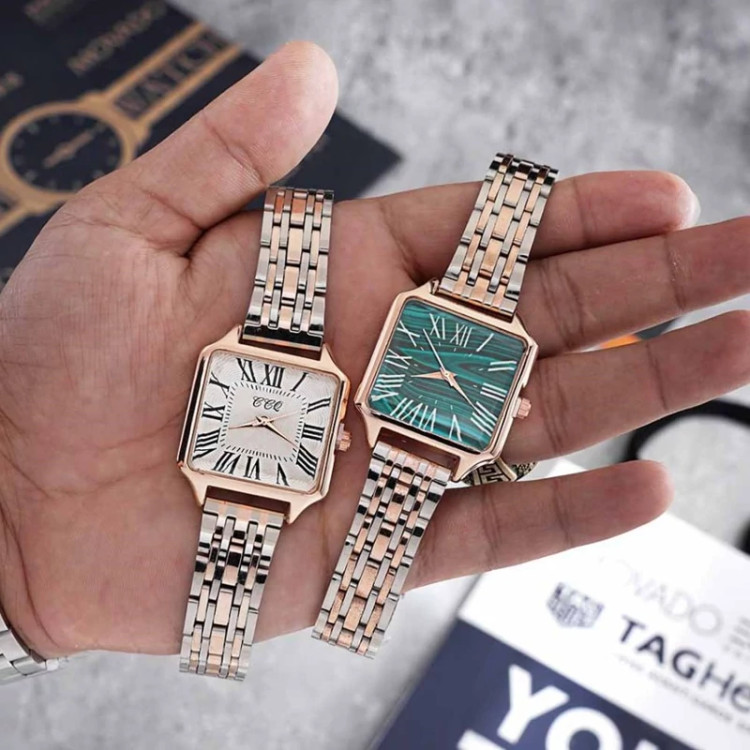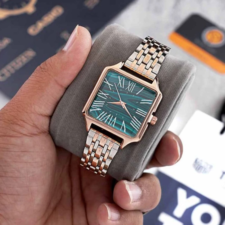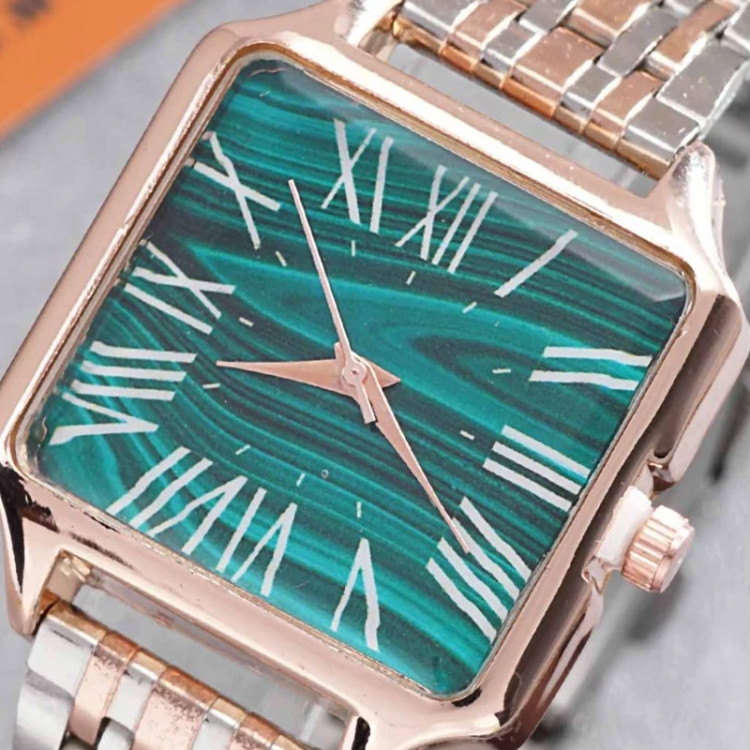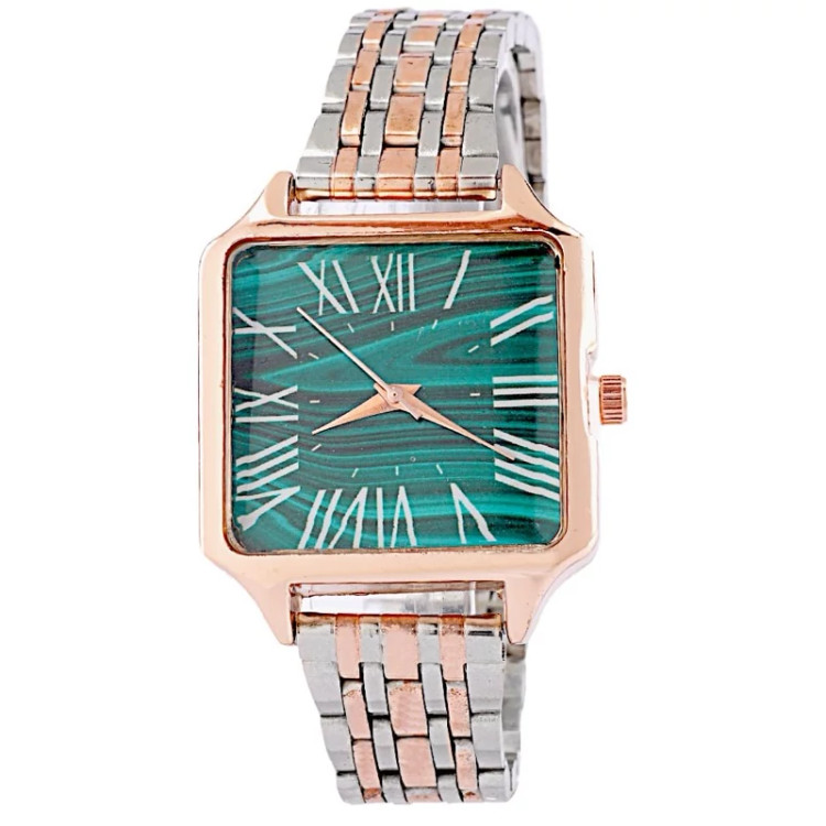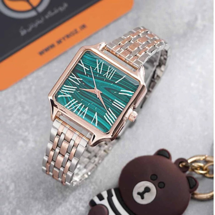 ساعت مچی زنانه جینوا GENEVA مدل 1578 • • برند : GENEVA • مقاوم در برابر رطوبت • مناسب برای : خانم ها • روزشمار : ندارد • نوع قفل :کلیپسی • شیشه : اکرلیک • جنس بند : استیل • رنگ بند : نقره ای رز • شکل صفحه: مربع • قطر صفحه : 25 میلیمتر • رنگ صفحه : سبز • درجه کیفیت موتور : کوارتز A++ • همراه با جعبه شکیل و باطری اضافه تمامی عکس ها از خود محصول در استدیو تخصصی رُز گرفته شده است ویژگی های خاص محصول : اموتور کوارتز ، اعداد یونانی ، قفل کلیپسی ضامن دار ، در دو رنگ صفحه سفید و سبز . ارسال رایگان