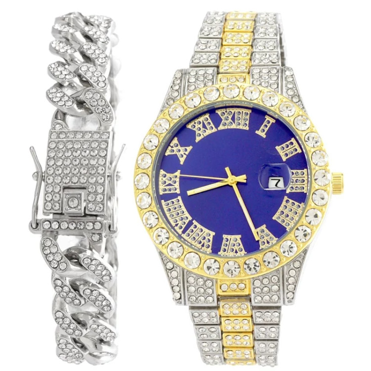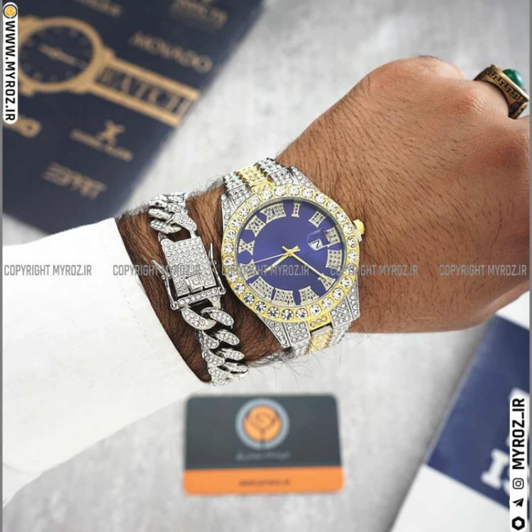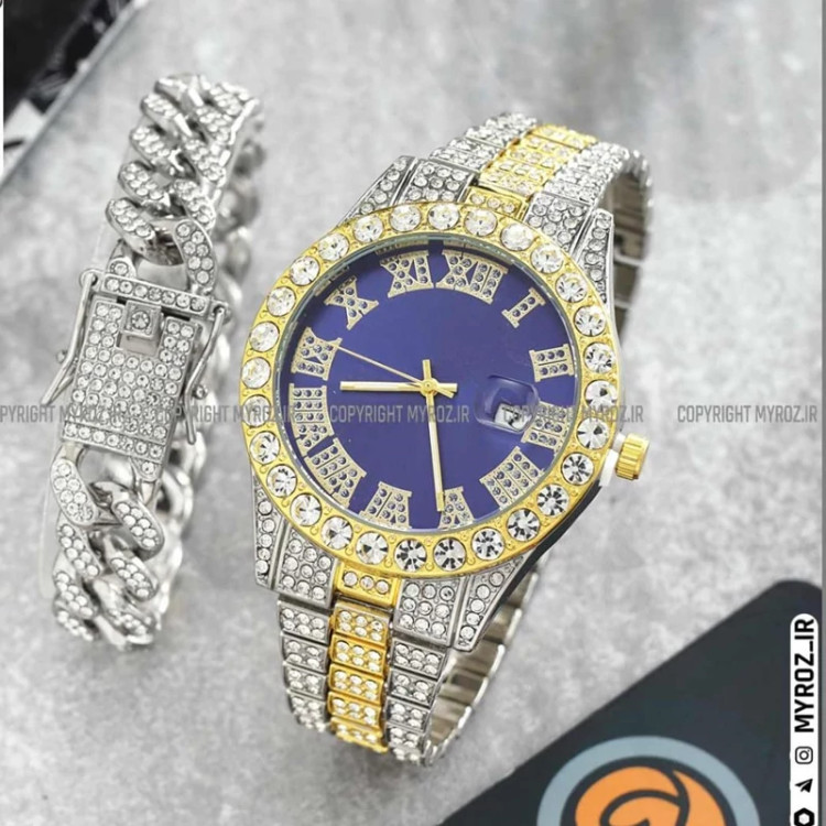 ست ساعت مچی مردانه فول نگین رولکس ROLEX مدل 2120 • برند : ROLEX • ضد آب 3 اتمسفر ( در حد پاشش آب 3ATM ) • مناسب برای : آقایان • روزشمار : دارد • نوع قفل : سگک • شیشه : اکرلیک • جنس بند : استیل • رنگ بند : نقره ای طلایی • شکل صفحه: دایره ای • قطر صفحه : 40 میلیمتر • رنگ صفحه : آبی • وزن خالص : 80 گرم • درجه کیفیت موتور : کوارتز A++ • همراه با جعبه شکیل و باطری اضافه • وزن خالص : 40 گرم • ابعاد دستبند : 20 × 10 میلیمتر تمامی عکس ها از خود محصول در استدیو تخصصی مای رُز گرفته شده است ویژگی های خاص : طرح فول نگین ، همراه با دستبند فول استون ، طرح صفحه یونانی ، قفل دستبند کلیپسی ، موتور کوارتز با کیفیت ، صفحه شب نما و رنگ ثابت .