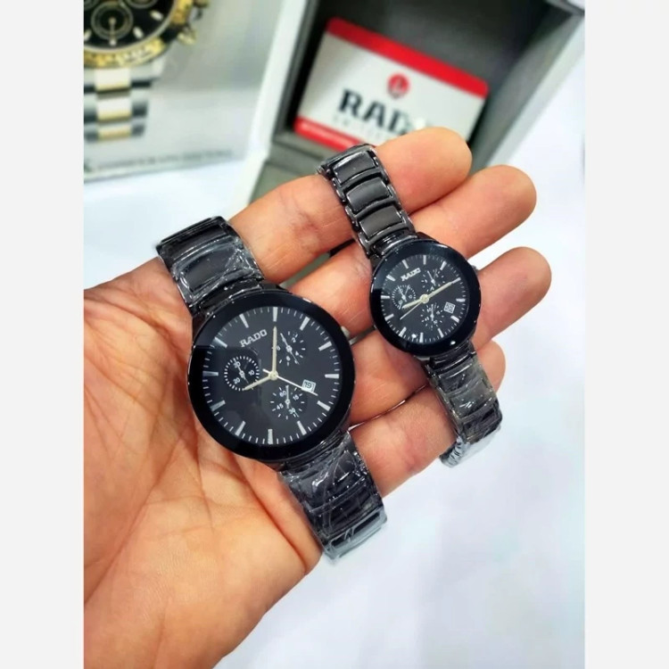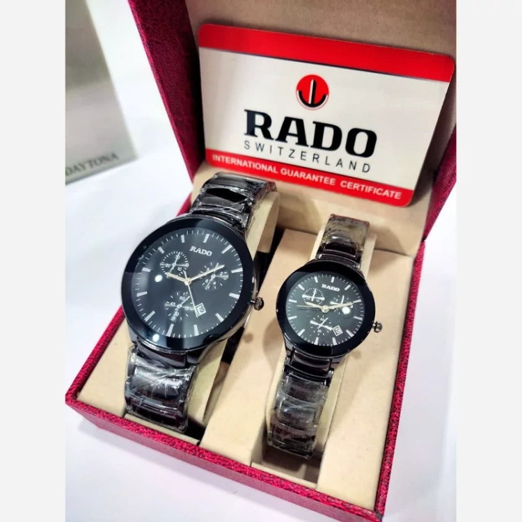 ✅ست ساعت مچی رادو Rado مدل 2355 • • برند : Rado • ضد آب 5 اتمسفر (5ATM ) • مناسب برای : آقایان و خانم ها • روزشمار : دارد • نوع قفل : کلیپسی ضامن دار • شیشه : سافایر • جنس بند : استیل • رنگ بند : مشکی • شکل صفحه: دایره ای • رنگ صفحه : مشکی • درجه کیفیت موتور : کوارتز A+++ • همراه با جعبه شکیل و باطری اضافه تمامی عکس ها از خود محصول در استدیو تخصصی مای رُز گرفته شده است ویژگی های خاص : موتور شرکتی با کیفیت رنگ ثابت