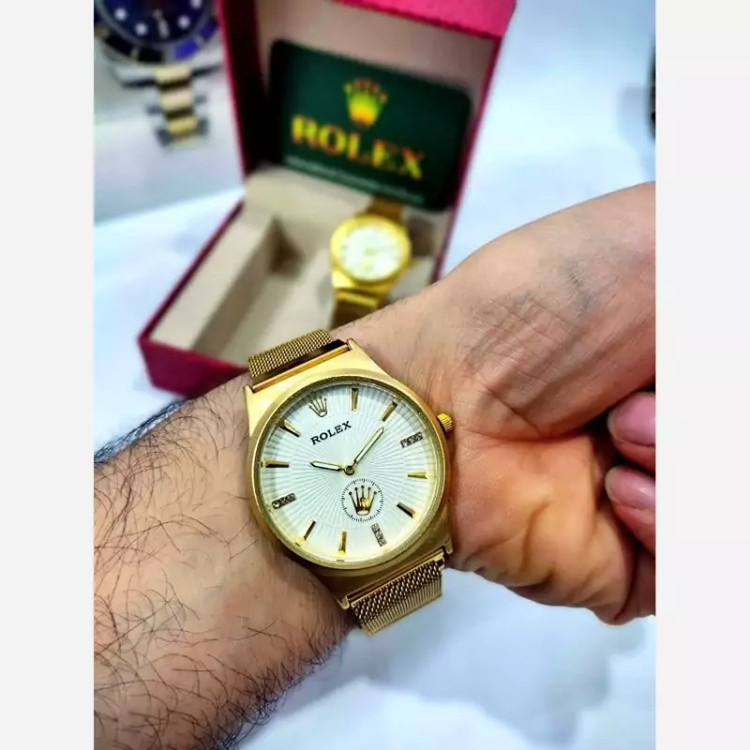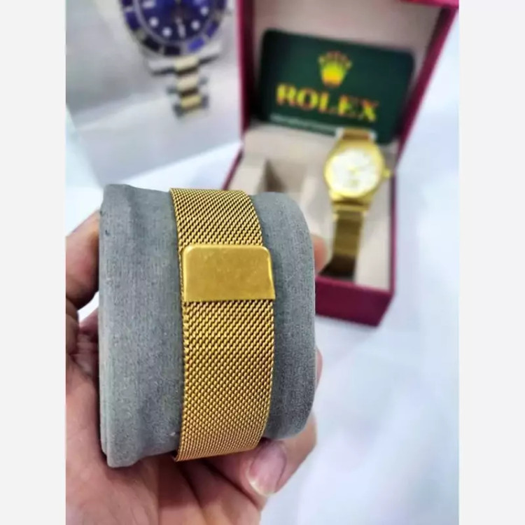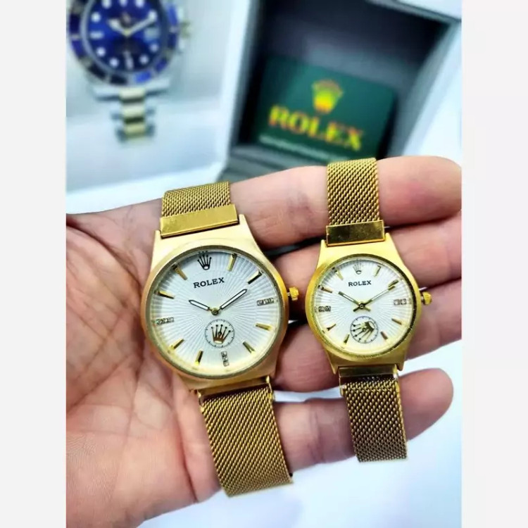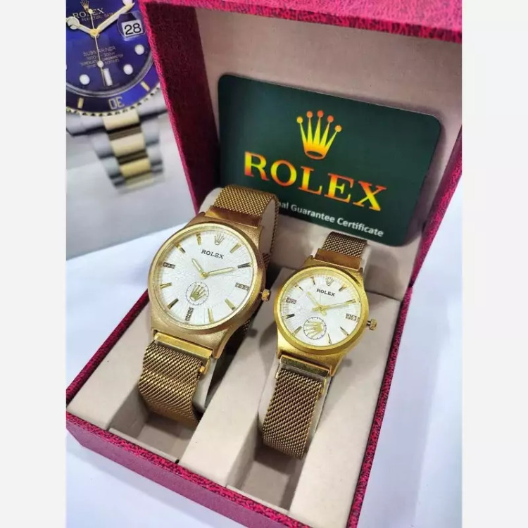 ✅ست ساعت مچی رولکس Rolex مدل 2353 • • برند : Rolex • ضد آب 3 اتمسفر (3ATM ) • مناسب برای : آقایان و خانم ها • روزشمار : دارد • نوع قفل : مگنتی • شیشه : سافایر • جنس بند : حصیری • رنگ بند : طلایی • شکل صفحه: دایره ای • رنگ صفحه : سفید • درجه کیفیت موتور : کوارتز A++ • همراه با جعبه شکیل و باطری اضافه تمامی عکس ها از خود محصول در استدیو تخصصی مای رُز گرفته شده است ویژگی های خاص : موتور شرکتی با کیفیت .