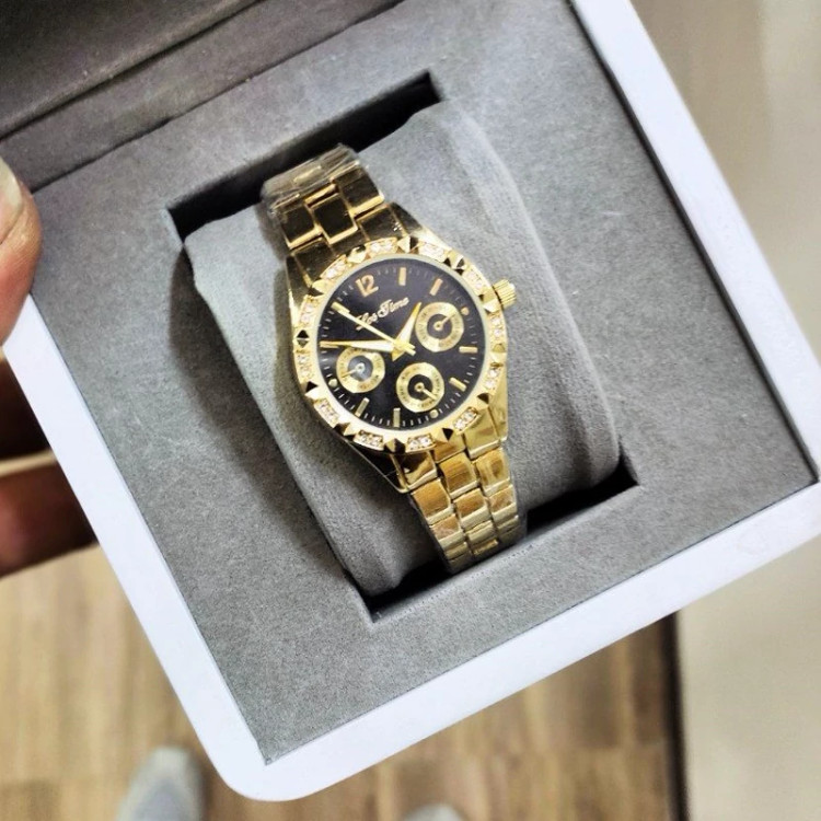 ساعت مچی زنانه طرح کرنو مدل 2188 • قیمت : 350هزارتومان • ضد آب 3 اتمسفر ( در حد پاشش آب 3ATM ) • مناسب برای : خانم ها • روزشمار : ندارد • نوع قفل :کلیپسی • شیشه : اکرلیک • جنس بند : استیل • رنگ بند : طلایی • شکل صفحه: دایره • قطر صفحه : 30 میلیمتر • رنگ صفحه : مشکی • وزن خالص : 55 گرم • درجه کیفیت موتور : کوارتز A • همراه با جعبه شکیل و باطری اضافه تمامی عکس ها از خود محصول در استدیو تخصصی مای رُز گرفته شده است .