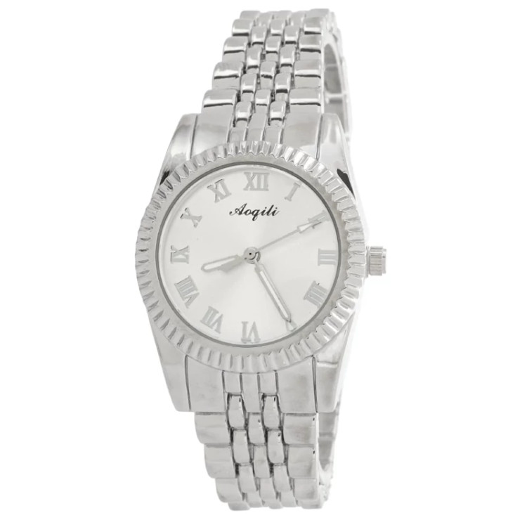 ساعت مچی زنانه AOGILI مدل 2222 • • برند : AOGILI • ضد آب 3 اتمسفر ( در حد پاشش آب 3ATM ) • مناسب برای : خانم ها • روزشمار : ندارد • نوع قفل : کلیپسی • شیشه : اکرلیک • جنس بند : استیل • رنگ بند : نقره ای • شکل صفحه: دایره ای • قطر صفحه : 25 میلیمتر • رنگ صفحه : سفید • وزن خالص : 70 گرم • درجه کیفیت موتور : کوارتز A++ • همراه با جعبه شکیل و باطری اضافه تمامی عکس ها از خود محصول در استدیو تخصصی مای رُز گرفته شده است .