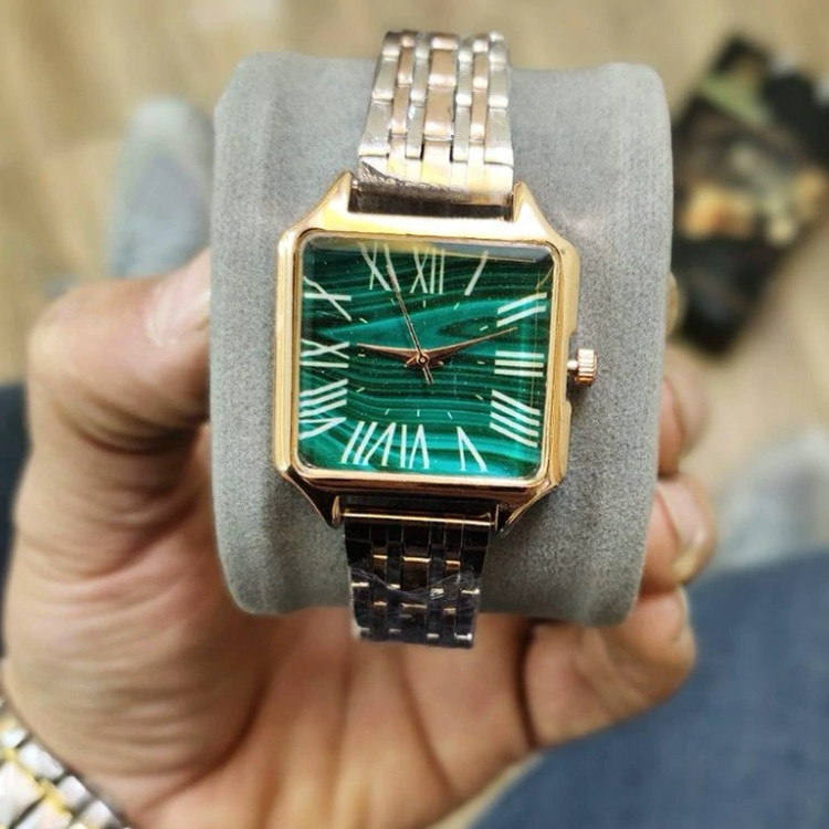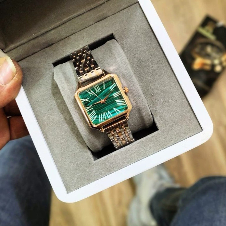 ساعت مچی زنانه جینوا GENEVA مدل 1578 • قیمت : 449 هزارتومان • برند : GENEVA • مقاوم در برابر رطوبت • مناسب برای : خانم ها • روزشمار : ندارد • نوع قفل :کلیپسی • شیشه : اکرلیک • جنس بند : استیل • رنگ بند : نقره ای رز • شکل صفحه: مربع • قطر صفحه : 25 میلیمتر • رنگ صفحه : سبز • درجه کیفیت موتور : کوارتز A++ • همراه با جعبه شکیل و باطری اضافه تمامی عکس ها از خود محصول در استدیو تخصصی رُز گرفته شده است ویژگی های خاص محصول : اموتور کوارتز ، اعداد یونانی ، قفل کلیپسی ضامن دار ، صفحه سبز .