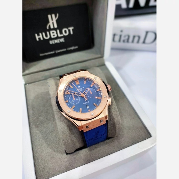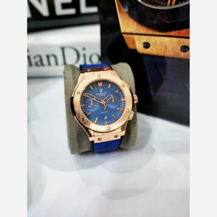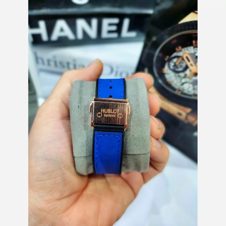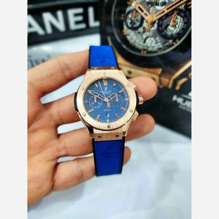 ✅ ساعت مچی زنانه هابلوت Hublot مدل 2453 • • برند : Hublot • ضد آب 3 اتمسفر (3ATM ) • مناسب برای : زنانه • روزشمار : دارد • نوع قفل : پروانه ای • شیشه : سافایر • جنس بند : چرمی • رنگ بند : ابی • شکل صفحه: دایره ای • رنگ صفحه : ابی • درجه کیفیت موتور : کوارتز SL گرید A+++ • همراه با جعبه کادویی و باطری اضافه تمامی عکس ها از خود محصول در استدیو تخصصی مای رُز گرفته شده است .
