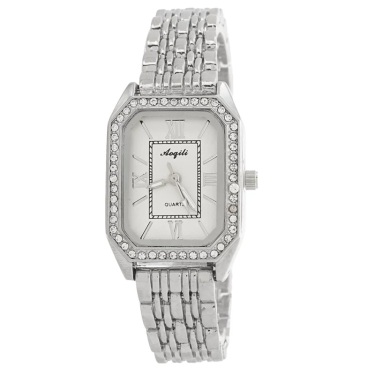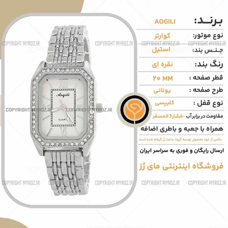 ساعت مچی زنانه AOGILI مدل 2215 • • برند : AOGILI • ضد آب 3 اتمسفر ( در حد پاشش آب 3ATM ) • مناسب برای : خانم ها • روزشمار : ندارد • نوع قفل : کلیپسی • شیشه : اکرلیک • جنس بند : استیل • رنگ بند : نقره ای • شکل صفحه: مربع • قطر صفحه : 20 میلیمتر • رنگ صفحه : سفید • وزن خالص : 55 گرم • درجه کیفیت موتور : کوارتز A++ • همراه با جعبه شکیل و باطری اضافه تمامی عکس ها از خود محصول در استدیو تخصصی مای رُز گرفته شده است .