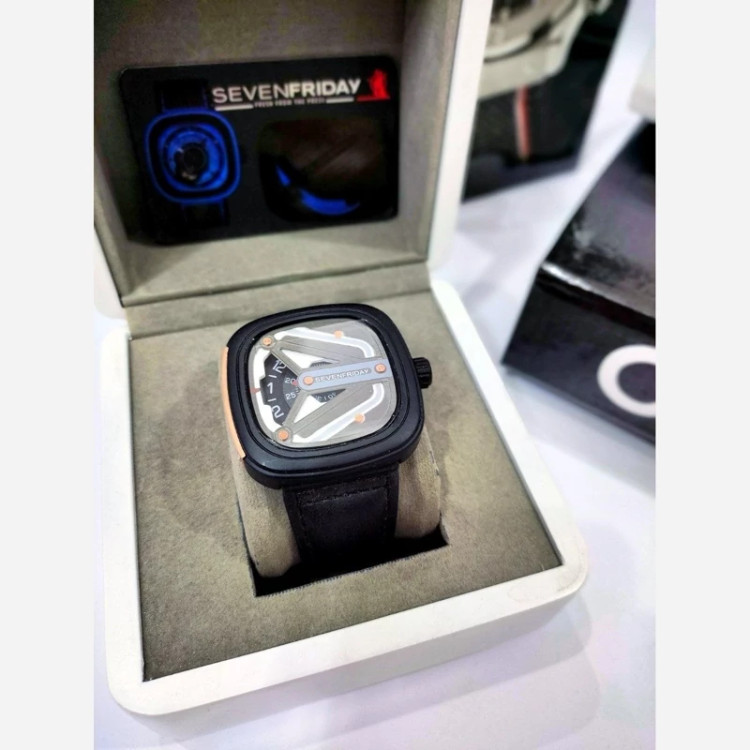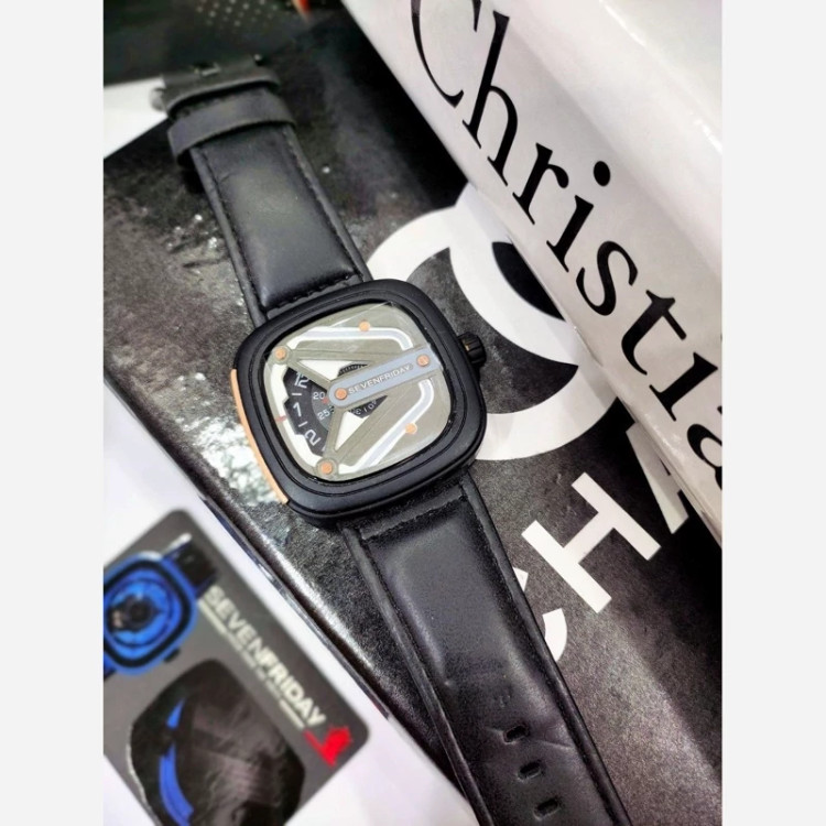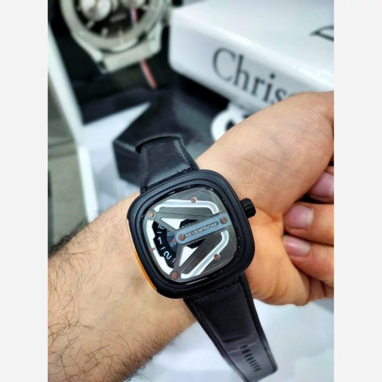 ✅ ساعت مردانه سون فرایدی SevenFriday مدل 2457 • تقدیم میشه • برند : SevenFriday • ضد آب 3 اتمسفر (3ATM ) • مناسب برای : مردانه • روزشمار : ندارد • نوع قفل : سگک • شیشه : سافایر • جنس بند : چرمی • رنگ بند : مشکی • شکل صفحه: مربع • رنگ صفحه : مشکی • درجه کیفیت موتور : کوارتز SL گرید A+++ • همراه با جعبه کادویی و باطری اضافه تمامی عکس ها از خود محصول در استدیو تخصصی مای رُز گرفته شده است