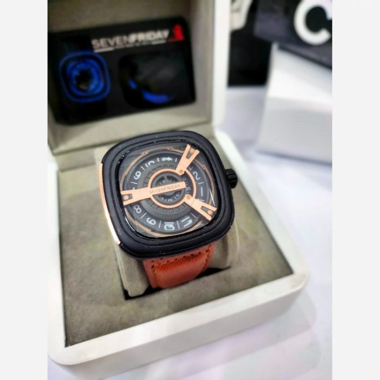 ✅ ساعت مردانه سون فرایدی SevenFriday مدل 2463 • • برند : SevenFriday • ضد آب 3 اتمسفر (3ATM ) • مناسب برای : مردانه • روزشمار : ندارد • نوع قفل : سگک • شیشه : سافایر • جنس بند : چرمی • رنگ بند : عسلی • شکل صفحه: مربع • رنگ صفحه : مشکی • درجه کیفیت موتور : کوارتز SL گرید A+++ • همراه با جعبه کادویی و باطری اضافه تمامی عکس ها از خود محصول در استدیو تخصصی مای رُز گرفته شده است