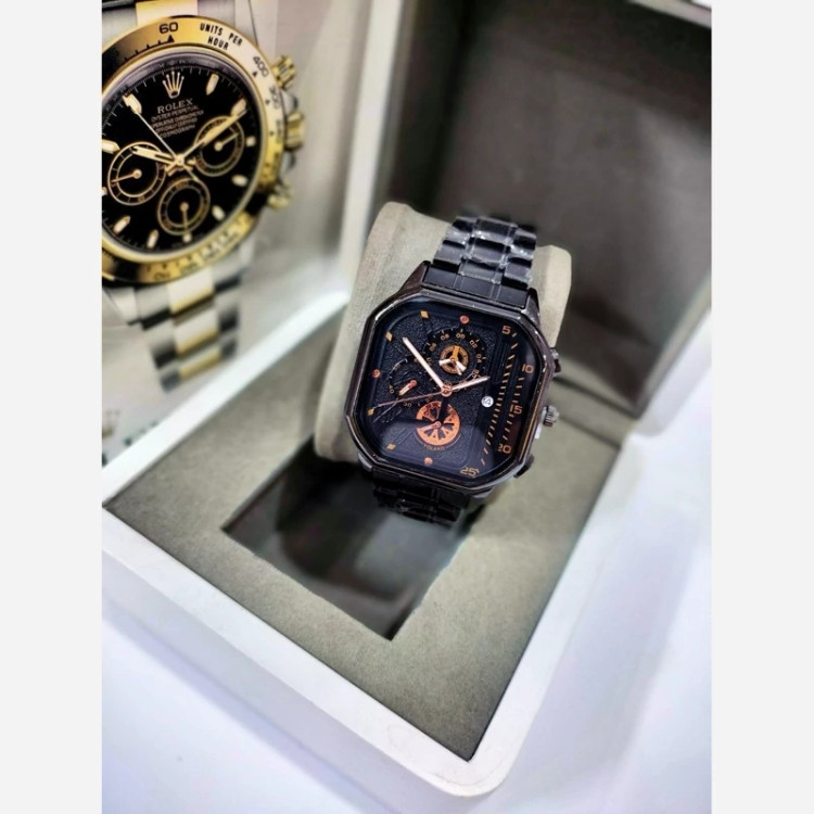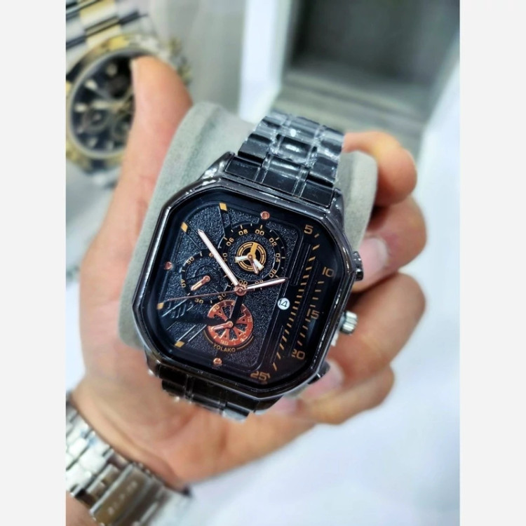 ساعت مچی مردانه جینوا GENEVA مدل 2093 • • برند : GENEVA • ضد آب 3 اتمسفر ( در حد پاشش آب 3ATM ) • مناسب برای : آقایان • روزشمار : دارد • نوع قفل : کلیپسی • شیشه : اکرلیک • جنس بند : استیل • رنگ بند : مشکی • شکل صفحه: مربع • قطر صفحه : 40 میلیمتر • رنگ صفحه : مشکی • وزن خالص : 80 گرم • درجه کیفیت موتور : کوارتز A++ • همراه با جعبه شکیل و باطری اضافه تمامی عکس ها از خود محصول در استدیو تخصصی مای رُز گرفته شده است ویژگی های خاص : طراحی جذاب و جدید، طرح سه موتوره ( تک موتوره ) تقویم فعال .