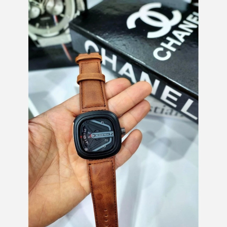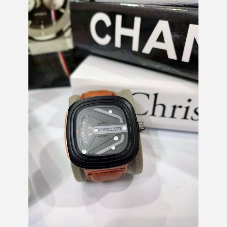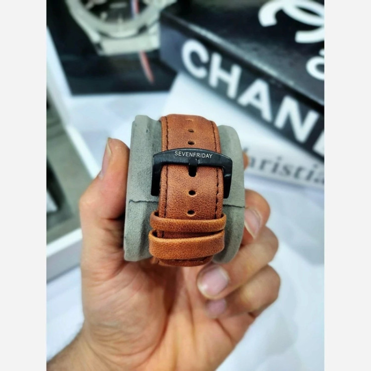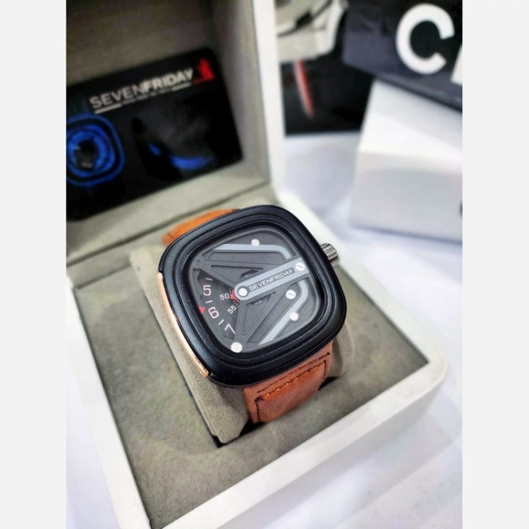 ✅ ساعت مردانه سون فرایدی SevenFriday مدل 2464 • • برند : SevenFriday • ضد آب 3 اتمسفر (3ATM ) • مناسب برای : مردانه • روزشمار : ندارد • نوع قفل : سگک • شیشه : سافایر • جنس بند : چرمی • رنگ بند : عسلی • شکل صفحه: مربع • رنگ صفحه : مشکی • درجه کیفیت موتور : کوارتز SL گرید A+++ • همراه با جعبه کادویی و باطری اضافه تمامی عکس ها از خود محصول در استدیو تخصصی مای رُز گرفته شده است