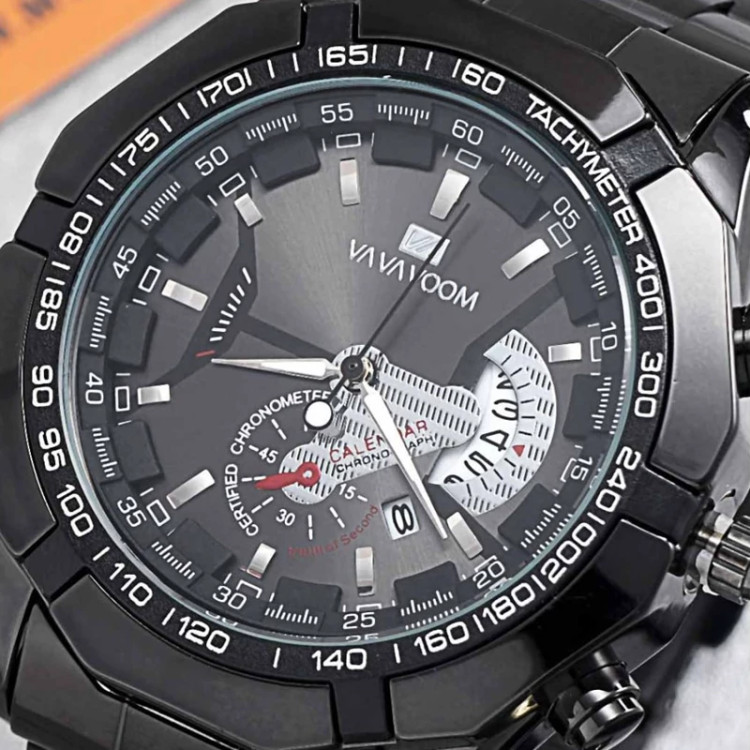 ساعت مچی مردانه VAVA VOOM مدل 1554 • قیمت : 675 هزارتومان • برند : VAVA VOOM • مقاوم در برابر رطوبت • مناسب برای : آقایان • روزشمار : دارد • نوع قفل :کلیپسی ضامن دار • شیشه : اکرلیک • جنس بند : استیل • رنگ بند : مشکی • شکل صفحه: دایره ای • قطر صفحه : 45 میلیمتر • رنگ صفحه : مشکی • درجه کیفیت موتور : کوارتز A++ شرکتی • همراه با جعبه شکیل و باطری اضافه تمامی عکس ها از خود محصول در استدیو تخصصی رُز گرفته شده است ویژگی های خاص محصول : طرح جذاب 3 موتوره ، موتور با کیفیت شرکتی ، تقویم فعال و حک برند پشت صفحه ی ساعت . ارسال رایگان