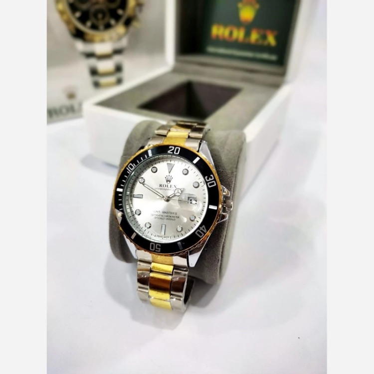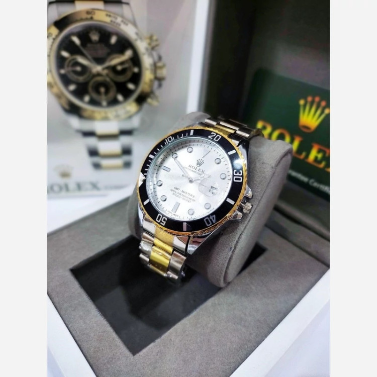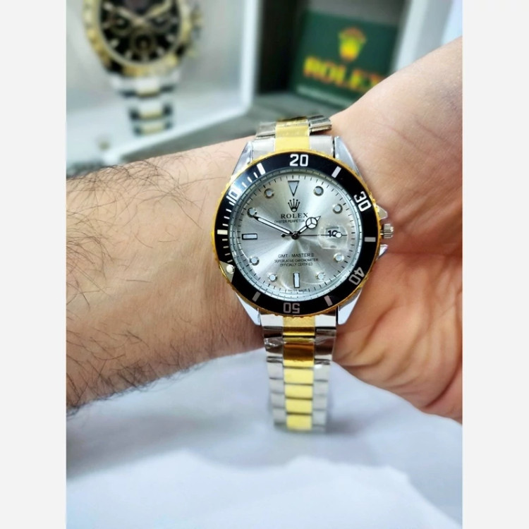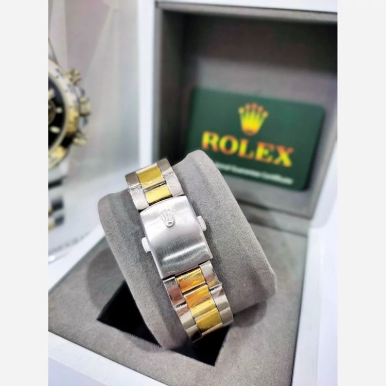 ✅ساعت مچی مردانه رولکس ROLEX مدل 2312 • • برند: ROLEX • ضد آب در حد شست و شوی دست • مناسب برای : مردانه • روزشمار : دارد • نوع قفل : کلیپسی • شیشه : اکرلیک • جنس بند : استیل • رنگ بند : طلایی نقره ای • شکل صفحه: دایره ای • قطر صفحه : 45 میلیمتر • رنگ صفحه : سفید • وزن خالص : 80 گرم • درجه کیفیت موتور : کوارتز • همراه با جعبه شکیل و باطری اضافه تمامی عکس ها از خود محصول در استدیو تخصصی مای رُز گرفته شده است ویژگی های خاص : بند با کیفیت ، طراحی جذاب صفحه .