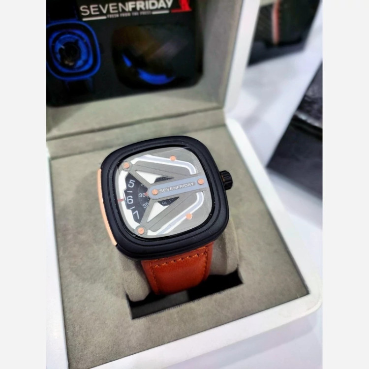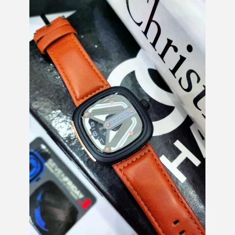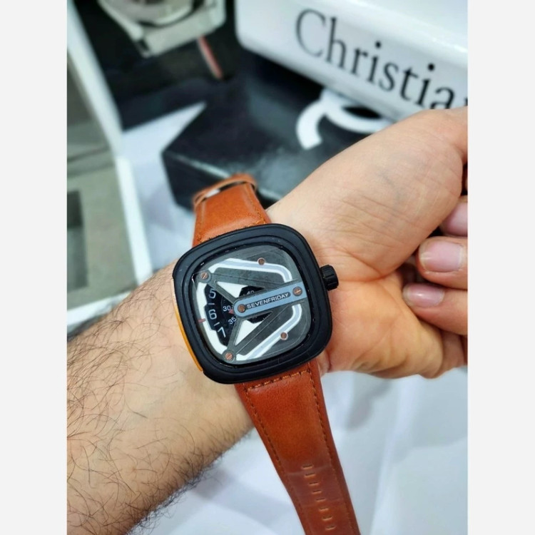 ✅ ساعت مردانه سون فرایدی SevenFriday مدل 2455 • • برند : SevenFriday • ضد آب 3 اتمسفر (3ATM ) • مناسب برای : مردانه • روزشمار : ندارد • نوع قفل : سگک • شیشه : سافایر • جنس بند : چرمی • رنگ بند : عسلی • شکل صفحه: مربع • رنگ صفحه : مشکی • درجه کیفیت موتور : کوارتز SL گرید A+++ • همراه با جعبه کادویی و باطری اضافه تمامی عکس ها از خود محصول در استدیو تخصصی مای رُز گرفته شده است
