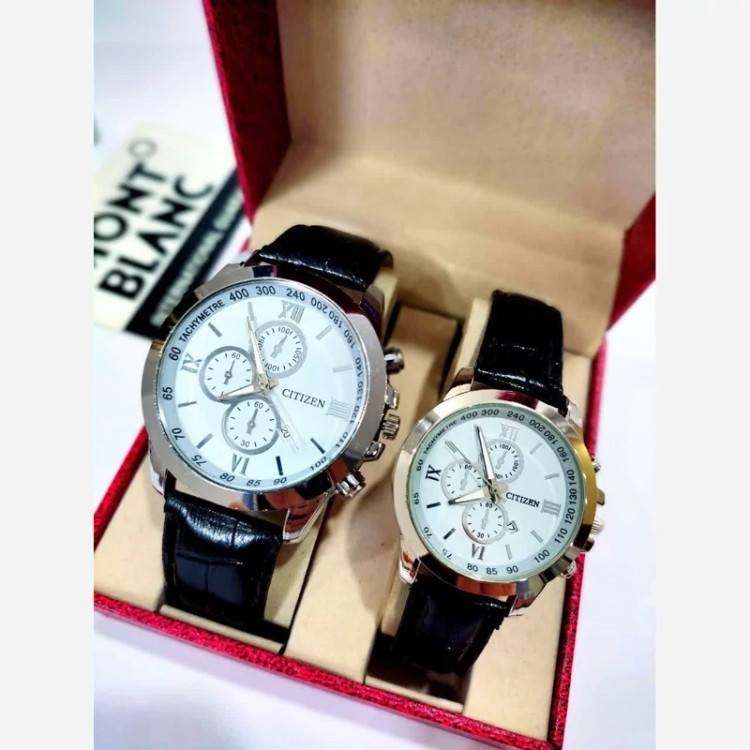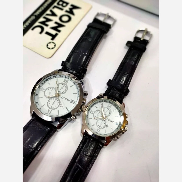 ✅ست ساعت مچی سیتیزن Citizen مدل 2366 • • برند : Citizen • ضد آب 3 اتمسفر (3ATM ) • مناسب برای : آقایان و خانم ها • روزشمار : دارد • نوع قفل : سگک • شیشه : سافایر • جنس بند : چرمی • رنگ بند : مشکی • شکل صفحه: دایره ای • رنگ صفحه : سفید • درجه کیفیت موتور : کوارتز SL • همراه با جعبه شکیل و باطری اضافه تمامی عکس ها از خود محصول در استدیو تخصصی مای رُز گرفته شده است ویژگی های خاص : موتور شرکتی با کیفیت