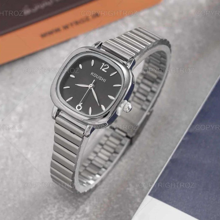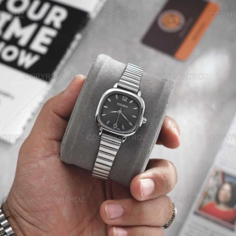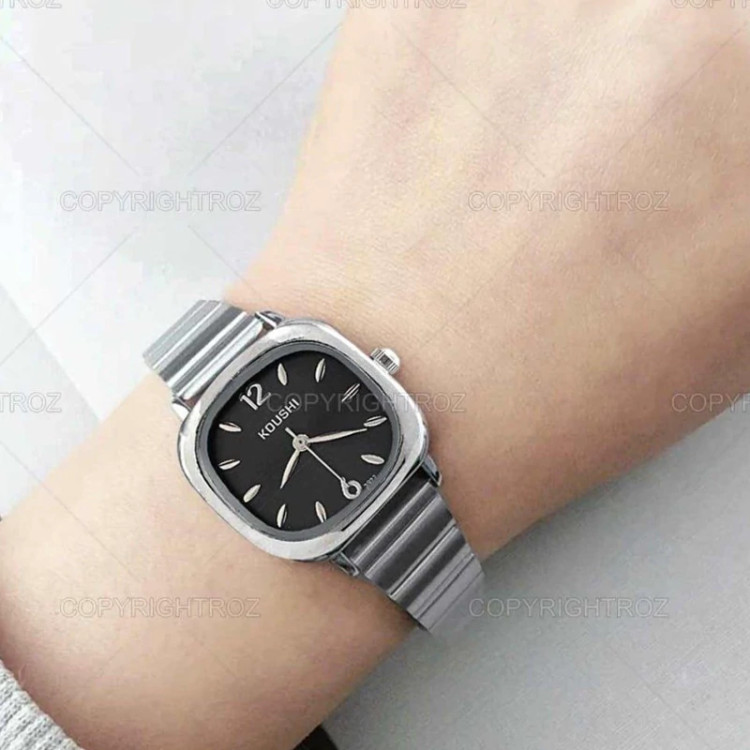ساعت مچی زنانه کوشی KOUSHI مدل 1901 • • برند : KOUSHI • مقاوم در برابر آب • مناسب برای : خانم ها • روزشمار : ندارد • نوع قفل :ریلی • شیشه : سافایر ضد خش • جنس بند : استیل • رنگ بند : نقره ای • شکل صفحه:مربعی • قطر صفحه : 25 میلیمتر • رنگ صفحه : مشکی • وزن خالص : 50 گرم • درجه کیفیت موتور : کوارتز A++ • همراه با جعبه شکیل و باطری اضافه تمامی عکس ها از خود محصول در استدیو تخصصی مای رُز گرفته شده است ویژگی های خاص : موتور شرکتی با کیفیت ، بند استیل با کیفیت، صفحه مینیمال و کلاسیک، طراحی خاص،رنگ ثابت . .
