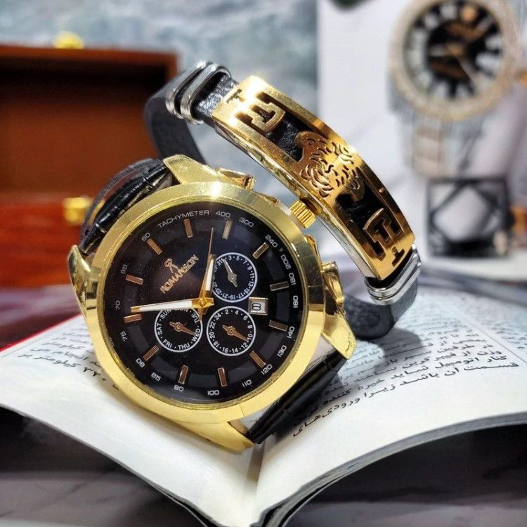 ست ساعت مردانه رومانسون و دستبند چرمی ورساچه