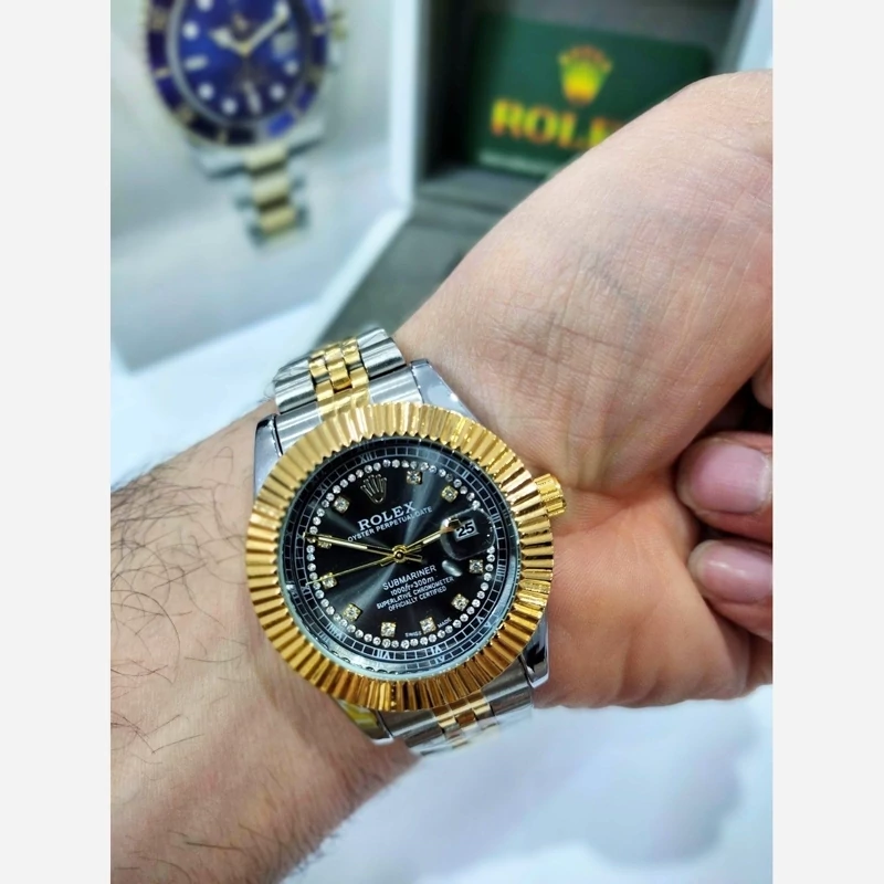 متاسفانه این کالا در حال حاضر موجود نیست. میتوانید از طریق لیست بالای صفحه، از محصولات مشابه این کالا دیدن نمایید.✅ ساعت مچی مردانه رولکس Rolex مدل 2340 • • برند : Rolex • ضد آب 5 اتمسفر (5ATM ) • مناسب برای : آقایان • روزشمار : دارد • نوع قفل : کلیپسی • شیشه : سافایر • جنس بند : استیل فول • رنگ بند : نقره ای طلایی • شکل صفحه: دایره ای • رنگ صفحه : مشکی • درجه کیفیت موتور : کوارتز SL • همراه با جعبه شکیل و باطری اضافه تمامی عکس ها از خود محصول در استدیو تخصصی مای رُز گرفته شده است ویژگی های خاص : موتور شرکتی با کیفیت رنگ ثابت