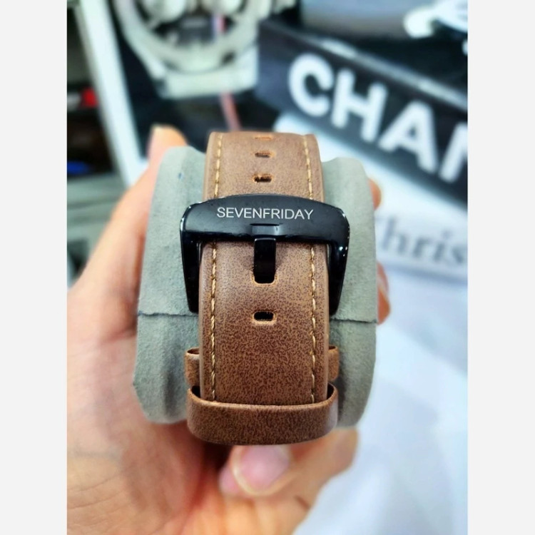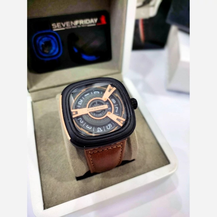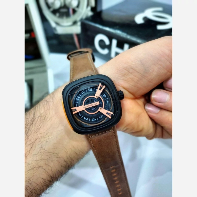 ✅ ساعت مردانه سون فرایدی SevenFriday مدل 2462 • تقدیم میشه • برند : SevenFriday • ضد آب 3 اتمسفر (3ATM ) • مناسب برای : مردانه • روزشمار : ندارد • نوع قفل : سگک • شیشه : سافایر • جنس بند : چرمی • رنگ بند : قهوه ای • شکل صفحه: مربع • رنگ صفحه : مشکی • درجه کیفیت موتور : کوارتز SL گرید A+++ • همراه با جعبه کادویی و باطری اضافه تمامی عکس ها از خود محصول در استدیو تخصصی مای رُز گرفته شده است .