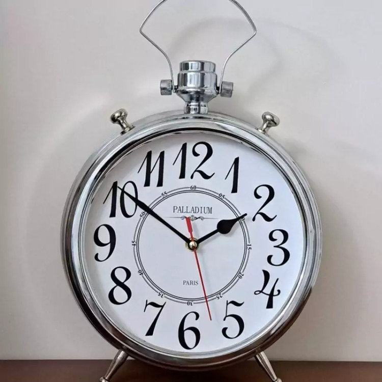 ساعت رومیزی پالادیوم در آبکاری سیلور و طلایی در صفحه های جور سایز ساعت قطر28سانتی متر در جعبه بسته بندی صادراتی