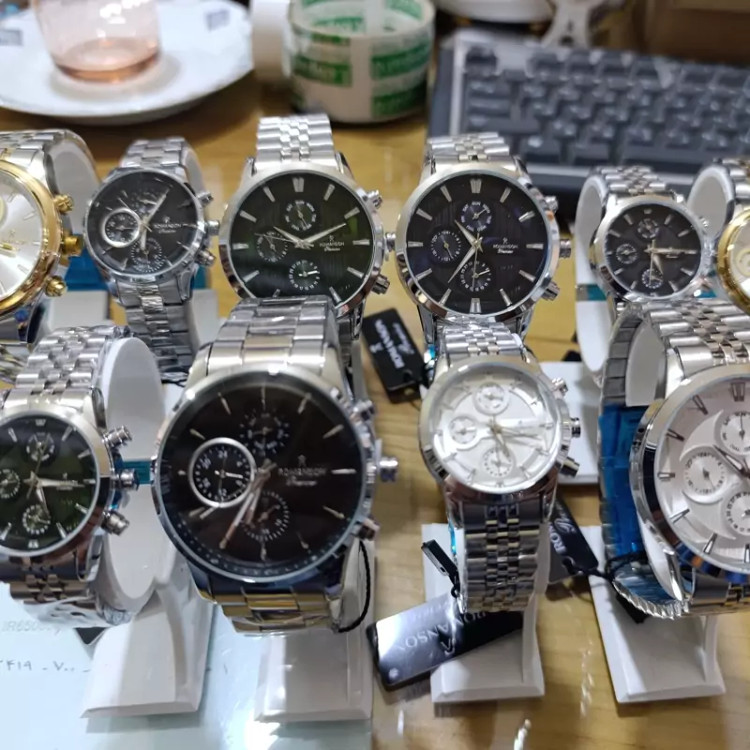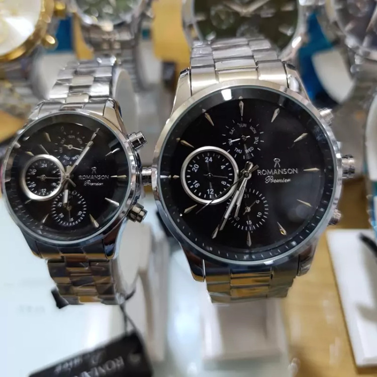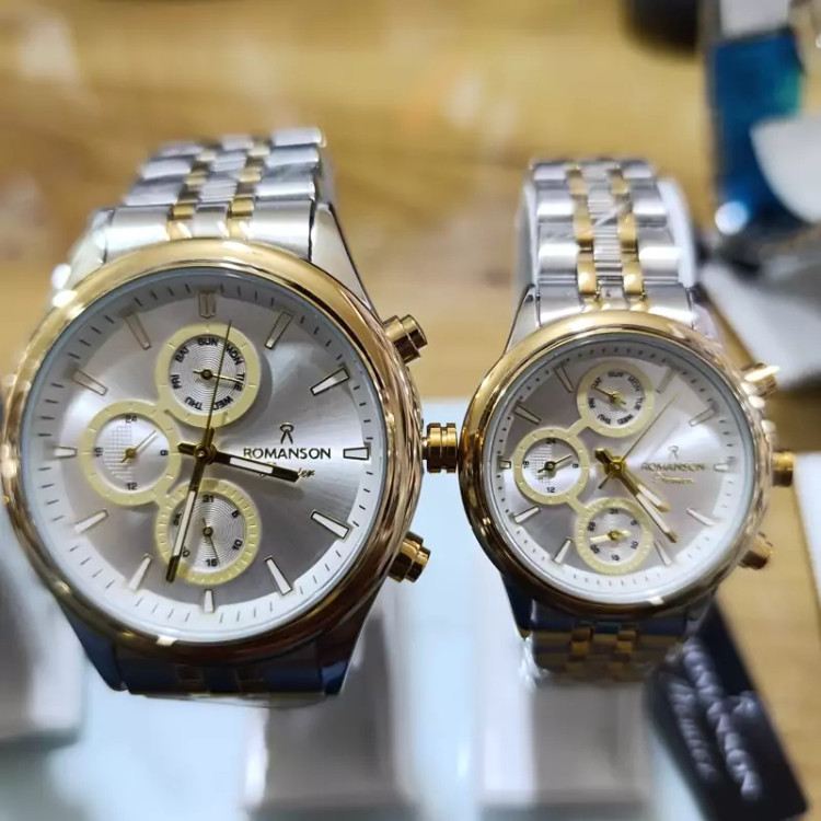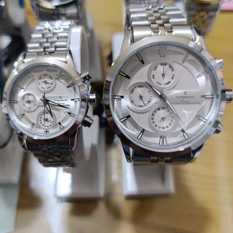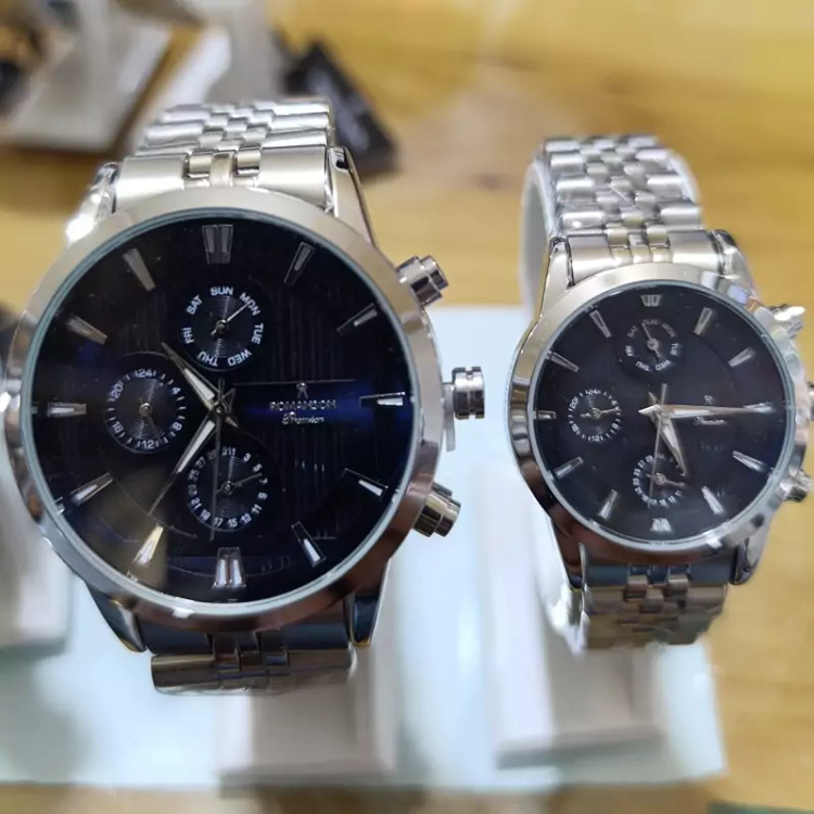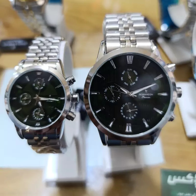 ساعت مچی رومانسون سه موتور فعال فول تایم بند فلزی استیل قفل پروانه ای ضد آب ست زنانه مردانه
